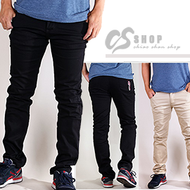 【【CS衣舖 】7031】潮男必備百搭色褲! 素面貼身 純色窄版 彈性材質 小直筒褲 2色 28-36腰