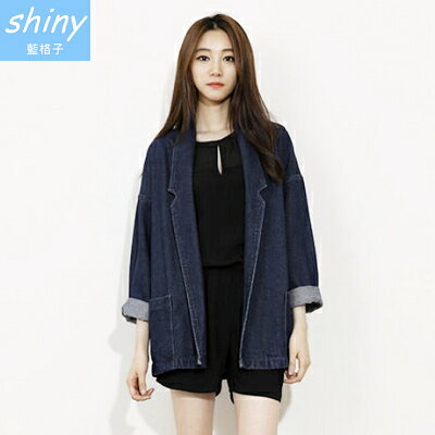 None, ~399超商免運 599折30 輸入代號 M7OJ-IPQJ-ZB18-R5YO【V1203】shiny藍格子-潮流達人.百搭翻領寬鬆中長款牛仔開衫外套。在樂天市場的shiny藍格子有最棒的商品,是您省錢的最佳選擇。
